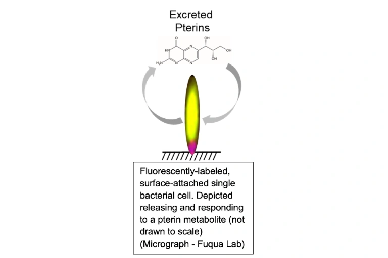 Department of Biology Professor Clay Fuqua and his research team have been funded for a four-year project via an R01 grant from the National Institute of General Medical Sciences at the National Institutes of Health. This project focuses on the role of enigmatic metabolites called pterins that are common to all living systems. Fuqua leads this project in collaboration with scientists from the IU Center for Genomics and Bioinformatics (IU-CGB) and with teams from Virginia Tech (biochemist Dr. Kylie Allen) and Purdue University (synthetic chemist Dr. Arun Ghosh). The Fuqua lab discovered a role for excreted pterins in regulating the formation of bacterial biofilms. The transition of bacteria from a free-living state to a sessile, surface-attached growth mode often results in formation of multicellular biofilms, that are profoundly altered in their physiology and have increased antimicrobial tolerance, making them a major source of persistent infections. Bacterially-produced and excreted pterins have a profound regulatory effect on biofilm formation. Microorganisms synthesize pterins from a branch of the biosynthetic pathway for folate, an essential micronutrient also found in most living systems. The funded work utilizes the experimental model system Agrobacterium tumefaciens, a plant pathogenic bacterium that has been a major focus of the Fuqua lab, but the research team has found that the pterin-specific control circuitry is conserved in a wide range of bacteria, many of which are human or plant pathogens. The study is designed to test and expand the current pterin control model in A. tumefaciens as a prototype for the conserved regulatory systems in other bacteria, using a combination of molecular genetics, biochemistry, synthetic organic chemistry, genomics and bioinformatics. This work will provide numerous insights into this newly discovered and widely relevant mechanism controlling biofilm formation with the potential to lead to new therapeutic targets.